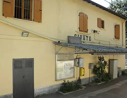 Civate railway station is a railway station in Italy. Located on the Como–Lecco railway, it serves the municipality of Civate in Lombardy. The train services are operated by Trenord.