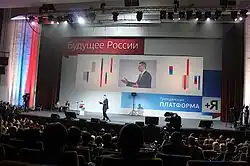 Civic Platform (Russian: Гражда́нская Платфо́рма, romanized: Grazhdanskaya Platforma, IPA: [ɡrɐʐˈdanskəjə plɐtˈformə]) is a conservative[3] political party in Russia. The party was formed on 4 June 2012[4] by oligarch and 2012 presidential candidate Mikhail Prokhorov.[5][6]