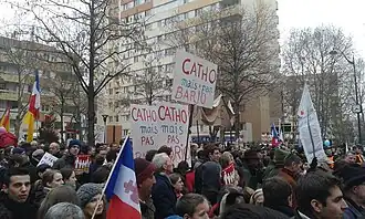 - ^ "Mariage homo: les opposants mobilisent, l'exécutif reste ferm" [Gay marriage: Opposition mobilises, the executive holds firm]. Le Monde (in French). 19 November 2012. Retrieved 3 November 2015.