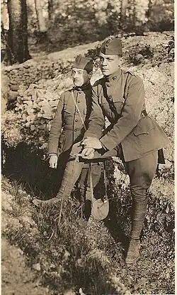 Wilson served in World War I as Brigade HQ chief in the 2nd (Indian Head) Division and later, because he spoke fluent French, as aide-de-camp to Brigadier General Wendell Neville. He was wounded twice and never shook the debilitating effects of mustard gas. He was awarded the Navy Cross, the Silver Star, and the Croix de Guerre, and ended up with the golden oak leaf of a major.[3] His war paintings were bequeathed to the Smithsonian American Art Museum by Alice H. Rossin.