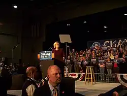 In 2013, McCaskill announced that she would be supporting Hillary Clinton in the 2016 presidential election.[52] During the primaries, McCaskill was among Clinton's top surrogates. She described Bernie Sanders as "too liberal" and "extreme" and saying that the enthusiasm of his supporters was no more impressive than that of Ron Paul's supporters in 2012.[53] On March 21, after Clinton's sweep of Southern primaries, McCaskill called for Sanders to throw his support to Clinton.[54]