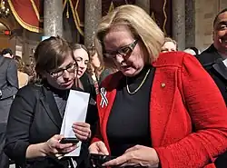 McCaskill was elected to the U.S. Senate in 2006, the first woman to be elected to the chamber from Missouri (Jean Carnahan was appointed upon the death of her husband). Re-elected in 2012, McCaskill was defeated in 2018 by Republican challenger Josh Hawley.[1] Since February 2019, McCaskill has served as a political analyst for MSNBC and NBC.[2][3]