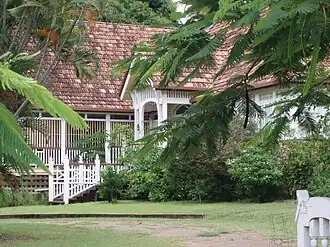 The lay out of the garden was described as formal, with symmetrical round or square beds and broad drives between. Also described was the (still extant) centre piece of oval lawn directly opposite the front entrance, around which on one side swept a wide path back to the entrance gate, and on the other through an archway of Thomasi and Lateritia Bougainvilleas. Fruit trees at the rear of the grounds included mangoes, custard apples, and persimmons.[1]