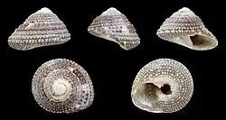 It differs from the typical forms of Clanculus in lacking the strong tooth at the base of the columella.[2]