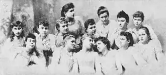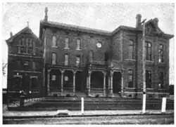 By 1884, the school had expanded to 250 pupils, leading to the need for a permanent location, incorporation of the school's charter and its naming of the Clara Conway Institute after its founder.[4] The Board of Trustees included some of the most influential businessmen in the city, and by 1888, the school had over 300 young women enrolled and 26 faculty members.[1] The school became known for its progressive and innovative approach to education, and included a fine reference library, a gymnasium, a science lab, and a complete arts studio. Courses included voice, piano, theory, and public speaking.[3] The school also operated a kindergarten program in Memphis, first established at the Market Street location, in 1872. She incorporated in to her school.[7] The school became a major college preparatory school for young women. The school closed in 1893 over a disagreement between her ambitions and trustees needs.[2] The financial backers thought she aimed too high for her graduates.[1][5]