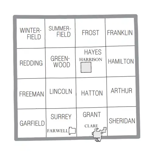 The county was created by the Michigan Legislature from part of Michilimackinac County in 1840, named Kaykakee County[6] after a Sauk Indian Chief. It was renamed Clare County in 1843 after County Clare in Ireland. The county was administered by a succession of other Michigan counties prior to the organization of county government in 1871.[5][1][7][a] Farwell was the first county seat; in 1877 the county seat was moved to Harrison.