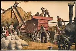 Over the course of a long and prolific career, Leighton wrote and illustrated numerous books praising the virtues of the countryside and the people who worked the land. In 1932, she was the first woman to produce a book on wood-engraving, Wood-Engraving and Woodcuts. This played an important part in popularizing the medium.[10] During the 1920s and 1930s, as the world around her became increasingly technological, industrial and urban, Leighton continued to paint rural working men and women. These included a 1938 poster design for London Transport promoting weekend walks in the countryside.[11] In the 1950s she created designs for Steuben Glass, Wedgwood plates, several stained-glass windows for churches in New England and for the transept windows of the Cathedral of Saint Paul (Worcester, Massachusetts).[2]