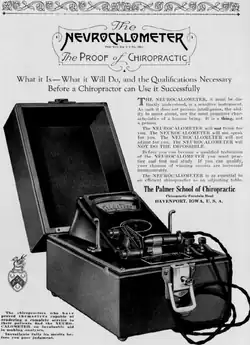 - ^ Moore, J. S. (1995). The neurocalometer: watershed in the evolution of a new profession (Chiropractic History: 15: 2: 51-54) PMID 11613400