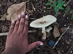 Clarkeinda trachodes is a poisonous mushroom in the family Agaricaceae. This agaric species is only distributed in South and Southeast Asia in countries such as Bangladesh, China, India, Indonesia, Malaysia, and Sri Lanka.[2][3] It has both a partial and universal veil, and dark-colorer spores.[2][3][4][5]