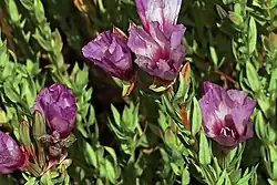 Clarkia imbricata is a rare species of flowering plant in the evening primrose family known by the common name Vine Hill clarkia. It is endemic to Sonoma County, California, where it is known from only one remaining natural occurrence near Vine Hill. A second natural population located on private land was extirpated when the owners plowed up the soil crust.[1] The California Native Plant Society has established a third population from cuttings and is tending it in a reserve.[2] This is a federally listed endangered species.