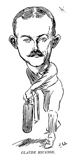 A batsman who sometimes opened the innings, Claude Hickson was described in 1899 as a steady batsman with a "splendid defence ... a veritable heart-breaker to the opposing trundlers" and a "capital field in the slips".[1] He was selected to play for New Zealand against Lord Hawke's English team in 1902-03 after scoring 73 and 20 for Wellington against them. However, he was not successful, and New Zealand lost heavily.[2]