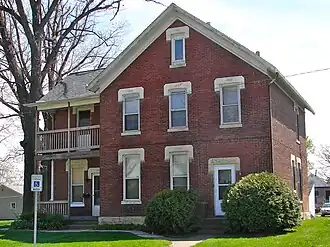 The Claus Untiedt House is a historic building located in the West End of Davenport, Iowa, United States. It and the neighboring Joachim Plambeck House are replicas of each other, although the Plambeck House has more alterations.[2] The 2-story Late Victorian style residence features a three-bay façade with a side entrance and a front gable. Two-story porches on the front and back of the east wing feature an Eastlake character. Stone hoods that sit flush with the exterior wall with drip lintels decorate the tops of the rectangular windows. The dark red brick structure rests on a stone foundation that has subsequently been covered with cement.[2] The main entryway may have been altered and its porch may have been removed. The house has been listed on the National Register of Historic Places since 1984.[1]