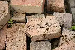 The plant was dismantled during the 1930s. The company paid local residents half a cent per brick they cleaned and stacked. In this way through the 1930s eleven kilns, six round and five rectangular ones, the storage buildings, the office, the tunnel dryer, and the massive smokestack bearing CLAYBURN 1911 were taken down, until by 1940 nothing except a few ruined foundations remained.