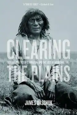 Clearing the Plains: Disease, Politics of Starvation, and the Loss of Aboriginal Life is a 2013 book by Canadian scholar James Daschuk.[1] The book takes an epidemiological approach and documents the historical roots of modern health disparities between Canadians and Indigenous peoples living in what is now Canada.[2] In doing so, Daschuk highlights in particular the role of Canadian policy designed to displace Indigenous populations from their traditional territories to make way for the settlement of the Prairies, including policies that amounted to forced starvation.[3] The book implicates numerous government officials, including John A. Macdonald, Canada's first Prime Minister, in advocating for and designing such policies.[4] Daschuk thus builds on the work of scholars such as Sarah Carter who have highlighted the shortcomings of Canadian Indigenous policies in the settlement period, along with scholarship on the social determinants of health.[5] In an article about his research, Daschuk argued that these types of policies were part of a process of genocide and ethnic cleansing.[6]
