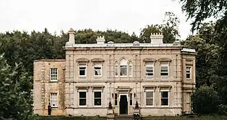 The hall is sited in a 13 acres (5.3 ha) estate,[3] with a walled-garden to the north, and outbuildings including an 1802 coach-house designed by William Fowler.[2] Nikolaus Pevsner, on his visit, noted that the estate has been "deparked", and comments that Mr. Maw's pre-1855 house was a "Georgian box".[2]