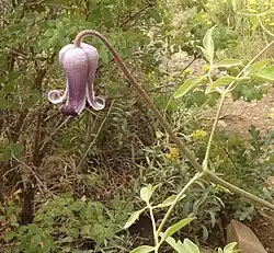 Clematis bigelovii, common name Bigelow's clematis,[3] is a perennial climbing plant in the family Ranunculaceae. It grows to approximately 2 feet (61 centimeters) in height with purple, solitary, bell-shaped flowers. It is native in Arizona and New Mexico and can be found in woodlands and rocky areas.