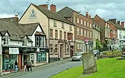 There are a number of landmarks in the town, the most famous of which is the 12th-century St Mary's Church[10] in the town centre, renowned for its crooked spire, the combined result of the warping of its oak timbers, and damp-induced rot where the timber spire sits on the masonry tower. Across the road from the churchyard is The Wells, fed from a local spring and for centuries serving as a public water supply. In 2010, for reasons as yet unexplained, the inflow to The Wells ceased for a while, and has only been intermittent since then. To the west of the church is the recently refurbished Market Hall, which now houses a number of facilities including the Tourist Information Centre.