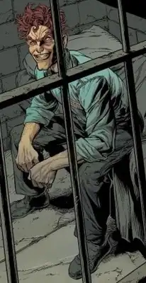 Kasady is a psychopath and a homicidal sadist. He is a deeply disturbed individual whose dark past known only through secondhand accounts and his own flawed recollections: he was born in a psychiatric prison at Ravencroft to a mother with paranoid schizophrenia, who died shortly after his birth.[11] Allegedly, his heart stopped for a few minutes until Knull intervened, saving his life so he would be the one to free the eldritch god from Klyntar.[12] As a child, he killed his grandmother by pushing her down a flight of stairs either for being simply a fan of Mary Poppins[13] or downright abusive,[14] tried to murder his foster mother, Louise, by dropping a hairdryer into her bathtub, and tortured and killed his mother's dog, Fifi, with a drill. His mother died either by trying to kill Kasady, in retaliation for killing her dog, and then being beaten to the brink of death by Kasady's father, Roscoe, or by trying to defend Kasady from his father who was beating him, who then pushed her away- causing her to hit her neck against a table, killing her. Either way, Roscoe received no defense from him during the trial. As an orphan, Kasady was sent to the St. Estes Home for Boys, where his antisocial behavior made him the target of abuse from both the other orphans and the staff. Kasady gained revenge by murdering the disciplinarian administrator, pushing a girl (who laughed at him for asking to date her) in front of a moving bus, and burning down the orphanage. It was during his brutal years at St. Estes that 8 year old Kasady acquired his philosophy that life was essentially meaningless and futile, that "laws are only words",[15] and came to see the spreading of chaos through random, unpatterned bloodshed as "the ultimate freedom" and thinking that he was actually "freeing" people.[16]