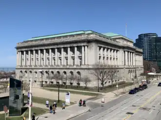 Cleveland City Hall is the seat of government for the City of Cleveland, Ohio, and the home of Cleveland City Council and the office of the Mayor of Cleveland. It opened in 1916 and is located at 601 Lakeside Avenue in the Civic Center area of Downtown Cleveland. The building was the first of its kind designed by Cleveland architect J. Milton Dyer for governmental purposes for a major U.S. city.[1] At the time of its construction, City Hall was to continue the city planning of Daniel Burnham's 1903 Group Plan.[2] City Hall stands as a historic landmark that was added to the Cleveland Landmarks Commission.[3]