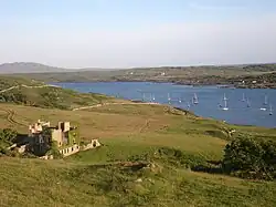 The town was founded at the start of the 19th century by John D'Arcy[3] who lived in Clifden Castle (built around 1818, now a ruin) west of Clifden. He had inherited the estate in 1804 when it was mostly inhabited by fishermen and farmers. The idea of establishing a town on the coast was first voiced by him in 1812. Bad communications and a lack of private capital prevented fast progress until the 1820s when the potato crop failed in 1821–22 and D'Arcy petitioned the government in Dublin for assistance. The engineer Alexander Nimmo was sent to the area in 1822. He constructed a quay at Clifden (finished in 1831) and started a road to Galway.[4] With these improvements to its infrastructure, the town began to grow.[5]