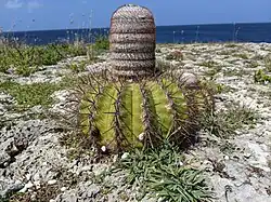 Cliff Villa Peninsula is a refuge for Melocactus also called Milon di Seru (Dutch) or Bushi (Papiamentu) which grows in abundance on the cliff. The cactus has an extensive root system that threads through the lime rock. Pulling the cactus up will break the root system and cause the plant to die. The cactus is native to the Caribbean and South-Central American region. Melocactus has approximately 40 species.