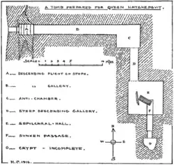 - ^ a b c d Carter, Howard (1917). "A Tomb Prepared for Queen Hatshepsuit and Other Recent Discoveries at Thebes". The Journal of Egyptian Archaeology. 4 (2/3): 107–118. doi:10.2307/3853878. ISSN 0307-5133. JSTOR 3853878. Retrieved 25 October 2021.