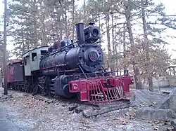 - Number 110, 2-6-2, built by the Vulcan Iron Works in 1927 as McRae Lumber & Manufacturing Gulf number 1. Later went to the Beechwood Band Mill in Cordele, Georgia, and was acquired by the Cliffside in 1933. The engine made its final run and was retired from revenue service on July 20, 1962, after which the railroad switched entirely to diesel powered operations and the 110 was placed in reserve until it was sold to the Swamp Rabbit Railroad in Cleveland, South Carolina, a year later.[3] Swamp Rabbit eventually sold the engine to the Stone Mountain Scenic Railroad, where it was given the name "Yonah II" and operated around Stone Mountain Park until it encountered running gear issues and was withdrawn in 1982. In 1984, the No. 110 was placed on display outside the Stone Mountain's Memorial Depot. In late 2012, Stone Mountain sold the No. 110 to the New Hope Valley Railway in Bonsal, NC were it is now undergoing restoration to operation on their 4.5 mile tourist railroad.[4]