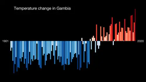 Since the 1940 to around 2010, the temperatures in the West Africa have noticeably increased and since 1960, the mean annual temperatures in Gambia have increased by 1.0 °C with an average rate of 0.21 °C per decade.[10]