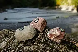 Machined natural stone holds are intended to give climbers a real stone feel. Due to processing costs, they are more expensive than resin holds and require extra care when installing. They are purported to be more environmentally friendly, and to bring the feeling of outdoor climbing to indoor climbing walls.
