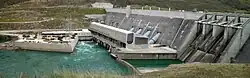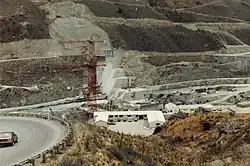 There was considerable controversy when the dam was planned because it would flood many houses and orchards upstream at Cromwell,[2] as well as the scenic Cromwell Gorge, which was a highlight of the then young but growing New Zealand tourism industry. Construction also required replacement of a stretch of highway[3] and the closure of the Otago Central Railway beyond Clyde, though materials for the dam would provide significant traffic for the rest of the line which was experiencing a drop in freight tonnage. To mitigate these problems, the Kirk Labour government decided a low dam should be built at Clyde. This decision was overturned by the following National government, who preferred a high dam.[4]