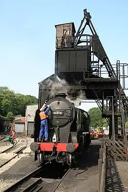 A coaling tower, coal stage, coaling plant or coaling station is a facility used to load coal as fuel into railway steam locomotives. Coaling towers were often sited at motive power depots or locomotive maintenance shops.[1]