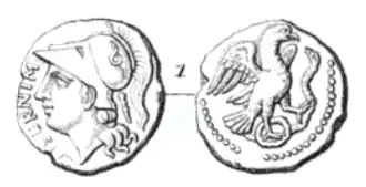 - ^ Athena / Victory on chariot. There is also a rare drachma commonly attributed to Cales.