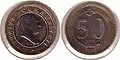 50Ykr | Cu+Ni+Zn | Cu+Ni | 23,85 | 7,00 | 1,90 | Large reeded | Atatürk - TÜRKİYE CUMHURİYETİ | Value, Crescent-star, year of minting |