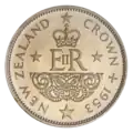 Coronation crown | 75% copper, 25% nickel | The initials EiiR of Queen Elizabeth II, with Royal Crown and whakairo carving, surrounded by the four stars of the Southern Cross. | Robert M. Conly | 257,000 | 1953 | ||||