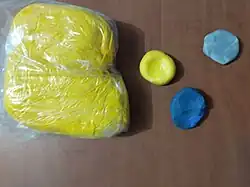 Cold porcelain is a crafting material most commonly made from cornstarch and white glue, not from porcelain as its name would suggest. The material can also include small amounts of oils and glycerol. Because most of the ingredients are biodegradable, lemon juice or sodium benzoate are sometimes used to prevent the growth of bacteria and fungi. It is most often used for at-home crafting and sculpting due to it drying from air exposure rather than heat curing. The material can also be dissolved by heat or water.[1]