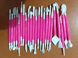 Since cold porcelain has a similar consistency to other materials like plasticine the most appropriate working tools are plastic tools or metal and plastic stilettos, scissors, rolling pins and cutters.