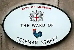 ![]() A ward plaque, with a cock, the emblem of Coleman Street Ward. | |