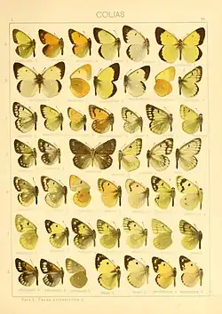 - ^ Josef Grieshuber & Gerardo Lamas (2007). "A synonymic list of the genus Colias Fabricius, 1807 (Lepidoptera: Pieridae)" (PDF). Mitteilungen der Münchner Entomologischen Gesellschaft. 97: 131–171. Archived from the original (PDF) on 2016-03-04. Retrieved 2013-05-19.