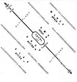According to Thérèse Bouysse-Cassagne, the eastern half Umasuyu was a puquina linguistic centre, while the western half Urcosuyu contained less puquina speakers.[9][15] The linguistic division was not important in Inca and colonial times, however.[15]