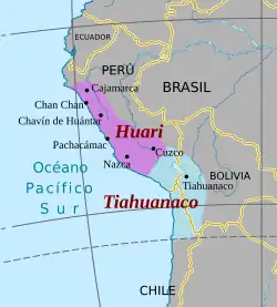 The Colla chiefdom was one of the Aymara kingdoms that occupied part of the Collao plateau after the fall of Tiwanaku.[4] In the mid-15th century the Collas possessed a vast territory, one of the largest of the Aymara kingdoms, which at the time the 9th Sapan Inka Pachakutiq Yupanqui Qhapaq the Intipchurin ("son of the sun"), conquered along with other political entities in the region.[5] Often described as a powerful, unified state,[5] archeological data indicates a more politically fragmented landscape, covered by defensive forts, called pukaras.[6]