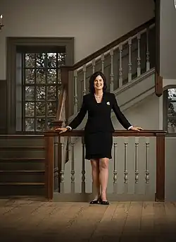 The Board of Visitors delegates to a president the operating responsibility and accountability for the college's administrative, fiscal, and academic performance, as well as representing the college on public occasions such as conferral of degrees.[58] W. Taylor Reveley III, 27th President of the college, served from 2008 to 2018.[62] In February 2018, The Board of Visitors unanimously elected Katherine A. Rowe as Reveley's successor. Rowe is the first female president to serve the college since its founding.[63]
