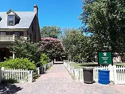 Two other buildings around the Wren Building compose an area known as "Ancient" or "Historic Campus":[52] the Brafferton (built within 1723 and originally housing the Indian School, now the President and Provost's offices) and the President's House (built within 1732). In addition to the Ancient Campus, which dates to the 18th century, the college also consists of "Old Campus" and "New Campus".[53] "Old Campus", adjacent to Ancient Campus, surrounds the Sunken Garden.[54]