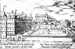 The Knight Academy had been the preferred educational institution for Protestant aristocrats from all across Europe, even Scandinavia, Poland, Hungary and the Habsburg monarchy. This changed in the course of the Thirty Years' War. In 1629, the Academy had to be closed temporarily, because the Catholic League occupied the Duchy and emperor Ferdinand II issued the Edict of Restitution.[5] Throughout the Counter-Reformation Jesuits came into town. There were attempts to convert the Knights Academy into a Jesuit College. Though the Jesuits moved to Rottenburg in 1649.