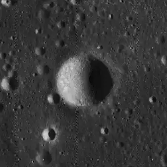 Collins is a tiny lunar impact crater located on the southern part of the Mare Tranquillitatis. It is located about 25 kilometers to the north of the Apollo 11 landing site, Tranquility Base. Named after American astronaut Michael Collins,[1] the crater is the central member of the row of three craters named in honor of the Apollo 11 crew members. About 15 kilometers to the west-northwest is the landing site of the Surveyor 5 lunar probe.