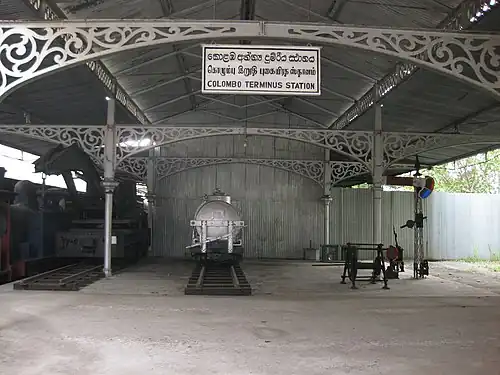 Colombo Terminus Station was the primary railway station in Colombo, Sri Lanka in the nineteenth century. It was retired from service at the beginning of the twentieth century and replaced by Maradana Station. The preserved building is now home to the National Railway Museum.[1]