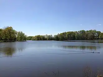 Colonial Lake is a 25-acre (10 ha) man-made lake along the Shabakunk Creek in Lawrence Township, Mercer County, New Jersey, United States.[1] It is located on Business Route 1 across from the Lawrence Shopping Center. The lake was created when an earthen dam was constructed across the Shabakunk in 1924 by local housing developers interested in providing recreation opportunities for a nearby development, which became known as Colonial Lakelands.[2] The lake is currently the centerpiece of Lawrence Township's Colonial Lake Park.[3]