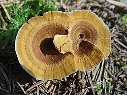 4. ^ Zhou L-W, Tedersoo L. (2012). "Coltricia australica sp. nov. (Hymenochaetales, Basidiomycota) from Australia". Mycotaxon. 122: 123–8. doi:10.5248/122.123.