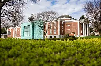 On the initiative of Isaiah Thomas, the AAS was founded on October 24, 1812, through an act of the Massachusetts General Court.[13] It was the third historical society established in America, and the first to be national in its scope.[5] Isaiah Thomas started the collection with approximately 8,000 books from his personal library.[14] The first library building was erected in 1820 in downtown Worcester, Massachusetts.[15] In 1853, the Society moved its collections to a larger building at the corner of Highland Street, also in Worcester.[16] This building was later abandoned and another new building was constructed. Designed by Winslow, Bigelow & Wadsworth, the Georgian Revival building was completed in 1910 and stands on the corner of Park Avenue and Salisbury Street. There have been several additions to this building to accommodate the growing collection. The most recent addition was completed in 2019 and created room for an updated HVAC system, conservation lab, and multi-use learning lab.[17] AAS was presented with the 2013 National Humanities Medal by President Obama in a ceremony at the White House.[18]
