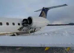 CommutAir Flight 4933 (operating as United Express Flight 4933) was a domestic regional flight operating from Newark, New Jersey, to Presque Isle, Maine, in the United States. The flight was operated by CommutAir under the United Express brand. On March 4, 2019, the Embraer EMB-145XR operating the flight touched down in a snow-covered grassy area to the right of the runway at Presque Isle International Airport, injuring three aircraft occupants and substantially damaging the aircraft. The accident was attributed to confirmation bias which prompted the flight crew to continue descending even though they could not see the runway due to snow; poor decision-making by the captain, fatigue of the first officer, and problems with the airport's instrument landing system were identified as contributing factors.[1][2]