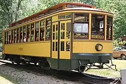 The first streetcar operated by the museum was Twin City Rapid Transit Company streetcar No. 1300. The car, which now appears much like it did in the 1930s-1950s era, was built by Twin City Rapid Transit as a fast interurban streetcar in 1908, with a top speed of about 35 miles per hour (56.35 km/h). When in operation for Twin City Lines TCRT No. 1300 was based at the East Minneapolis Station (carbarn) and often operated on the original Como-Harriet route.